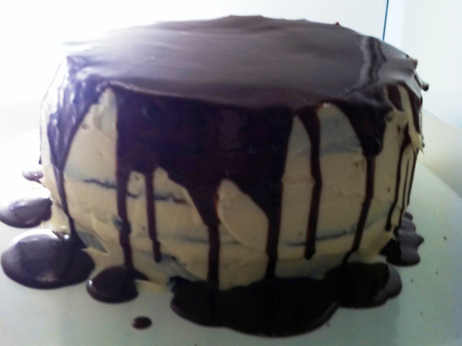 Pour the ganache over the top of the cake.