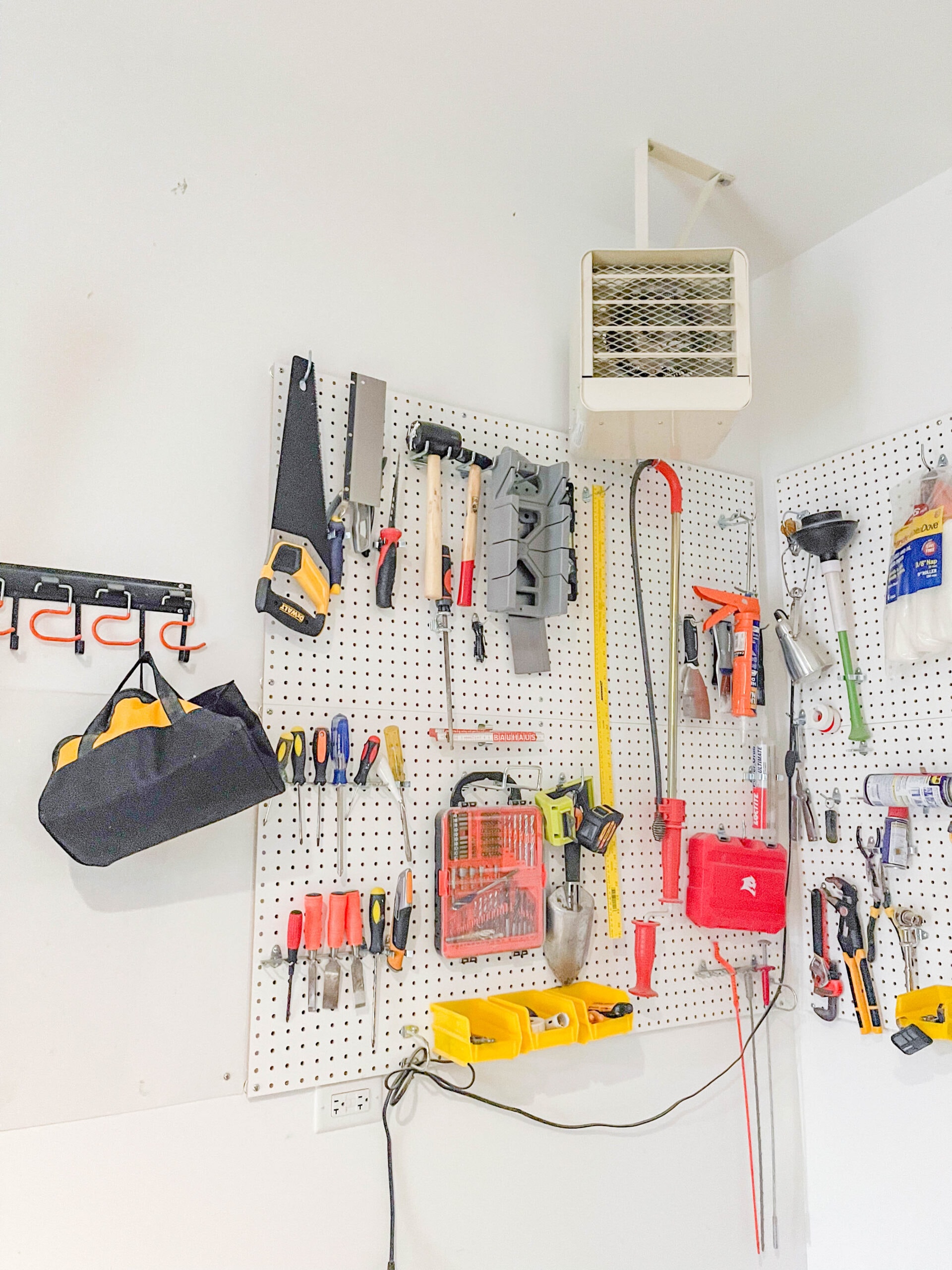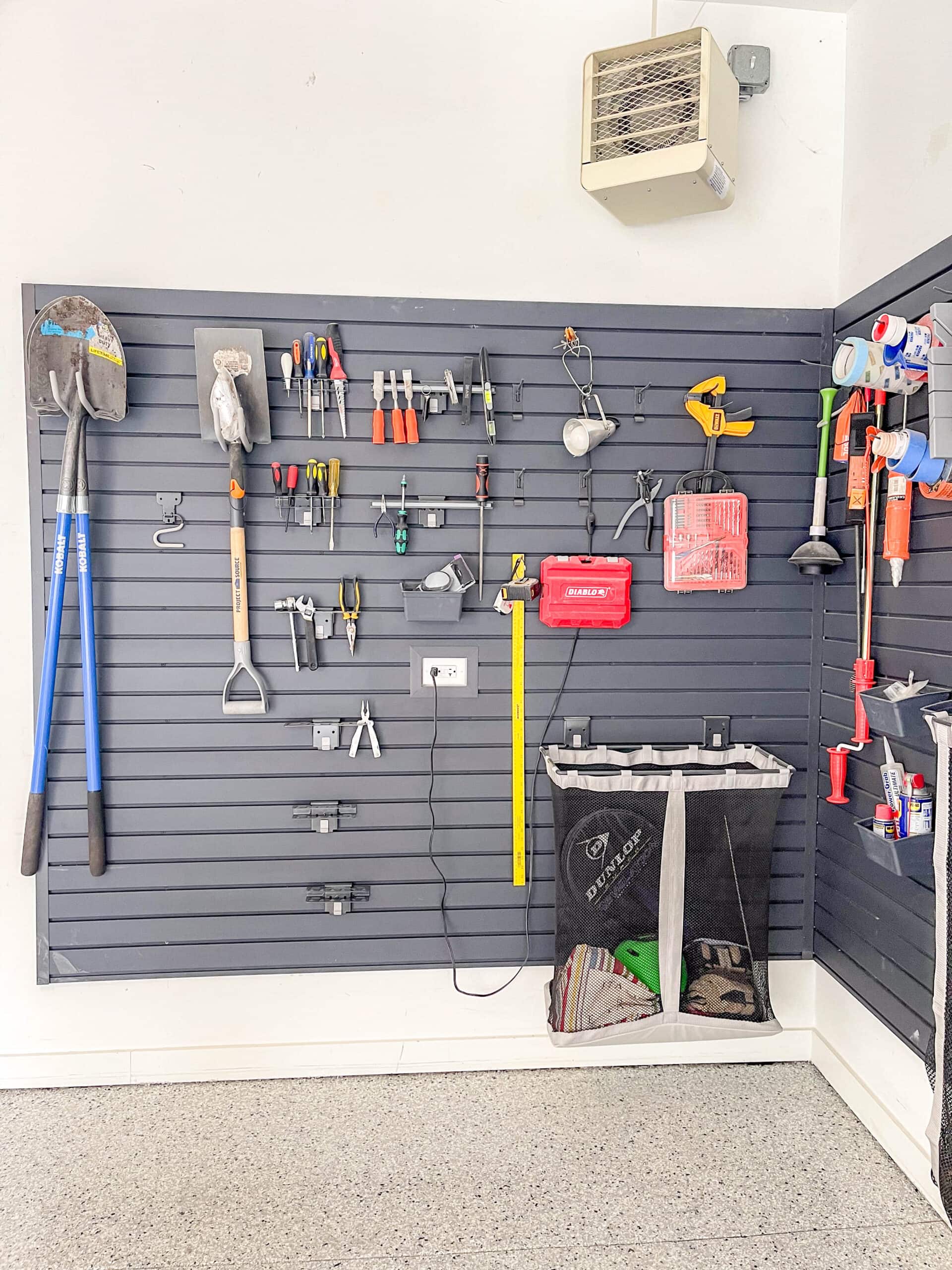 The slat wall looks so much nicer than the peg wall. I am amazed by the difference! It's much easier to move everything around on the slat wall, too.